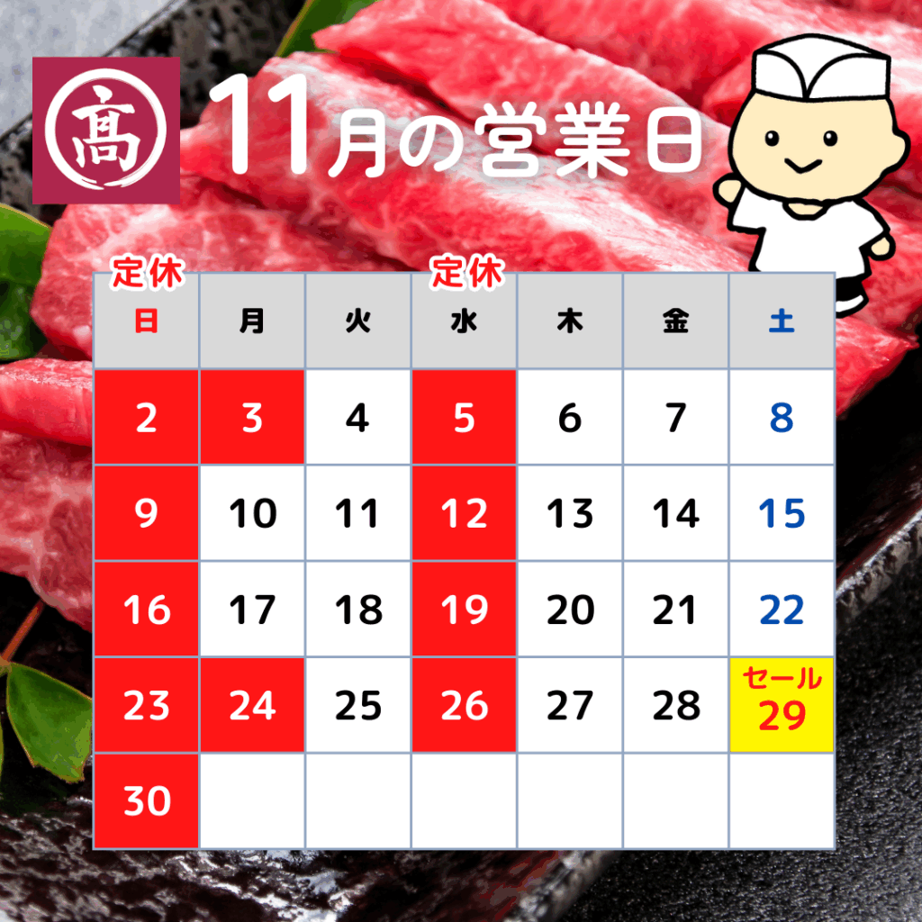 11/29(土)は肉の日セールの予定です。